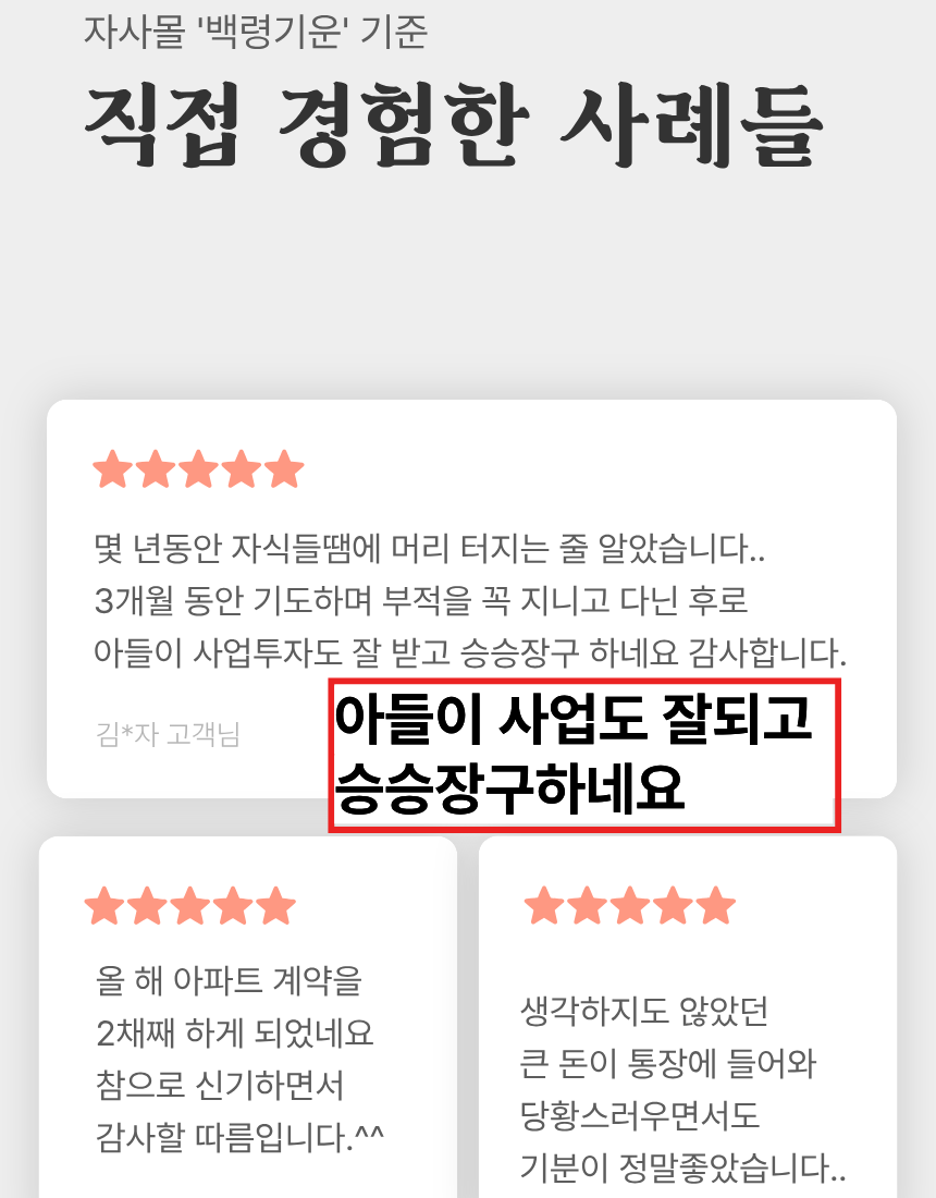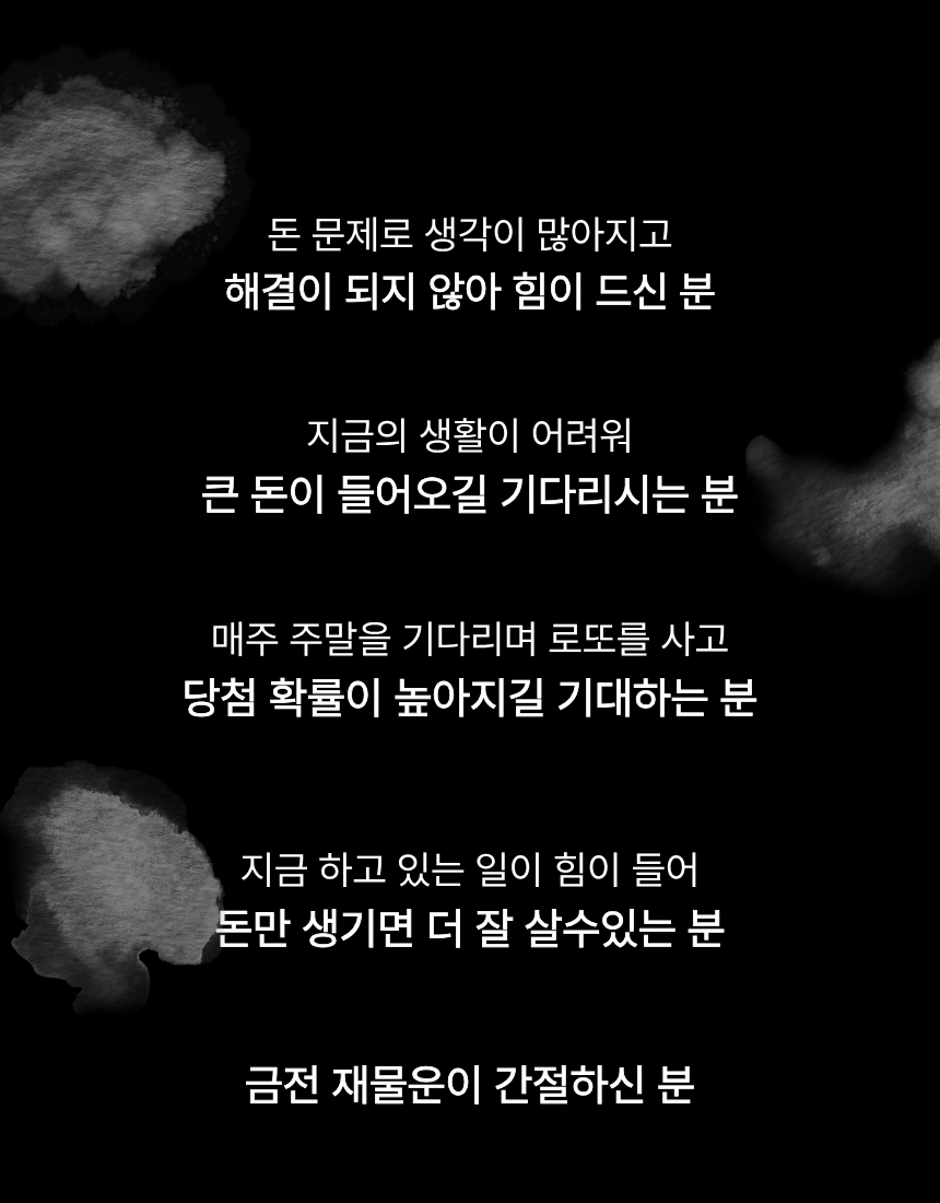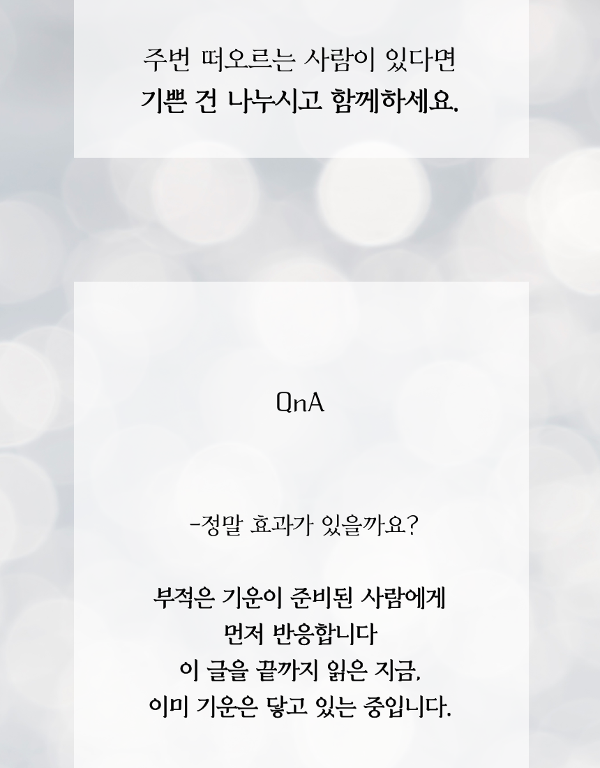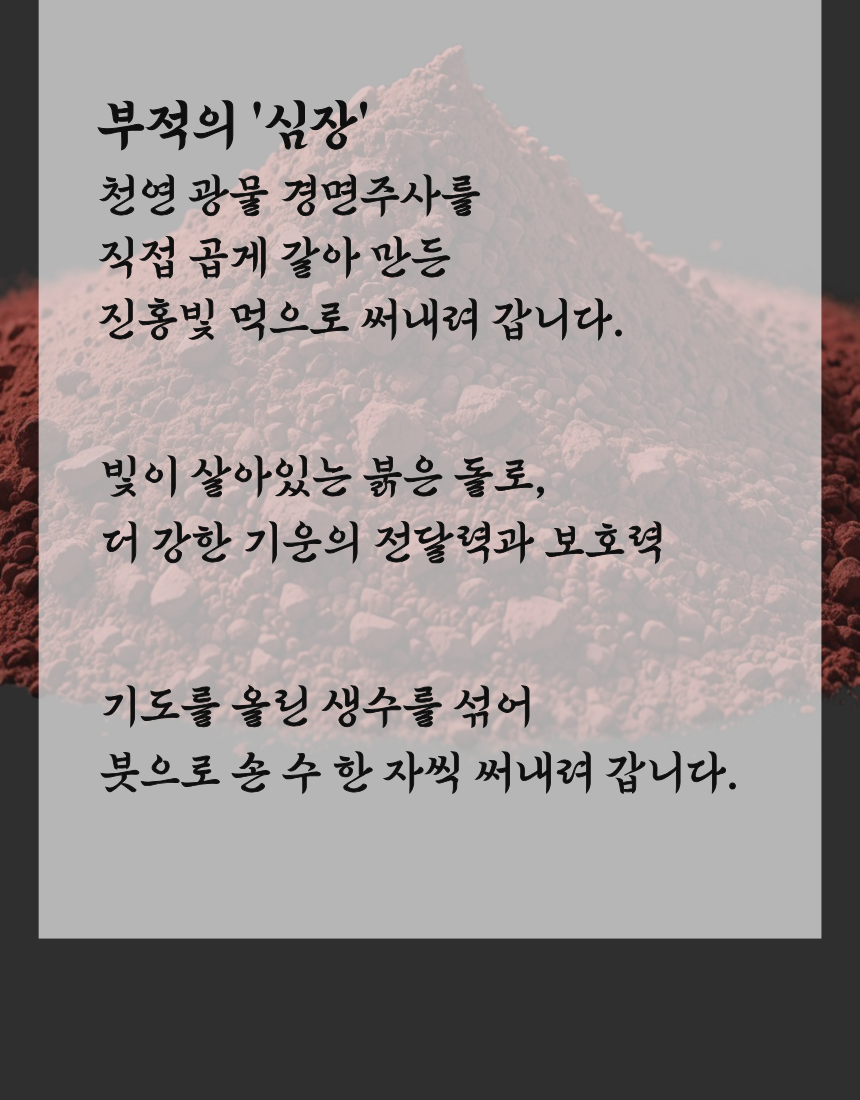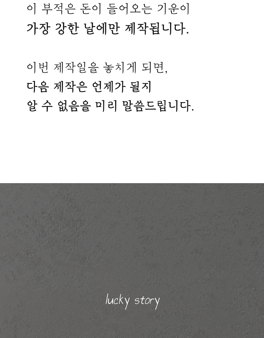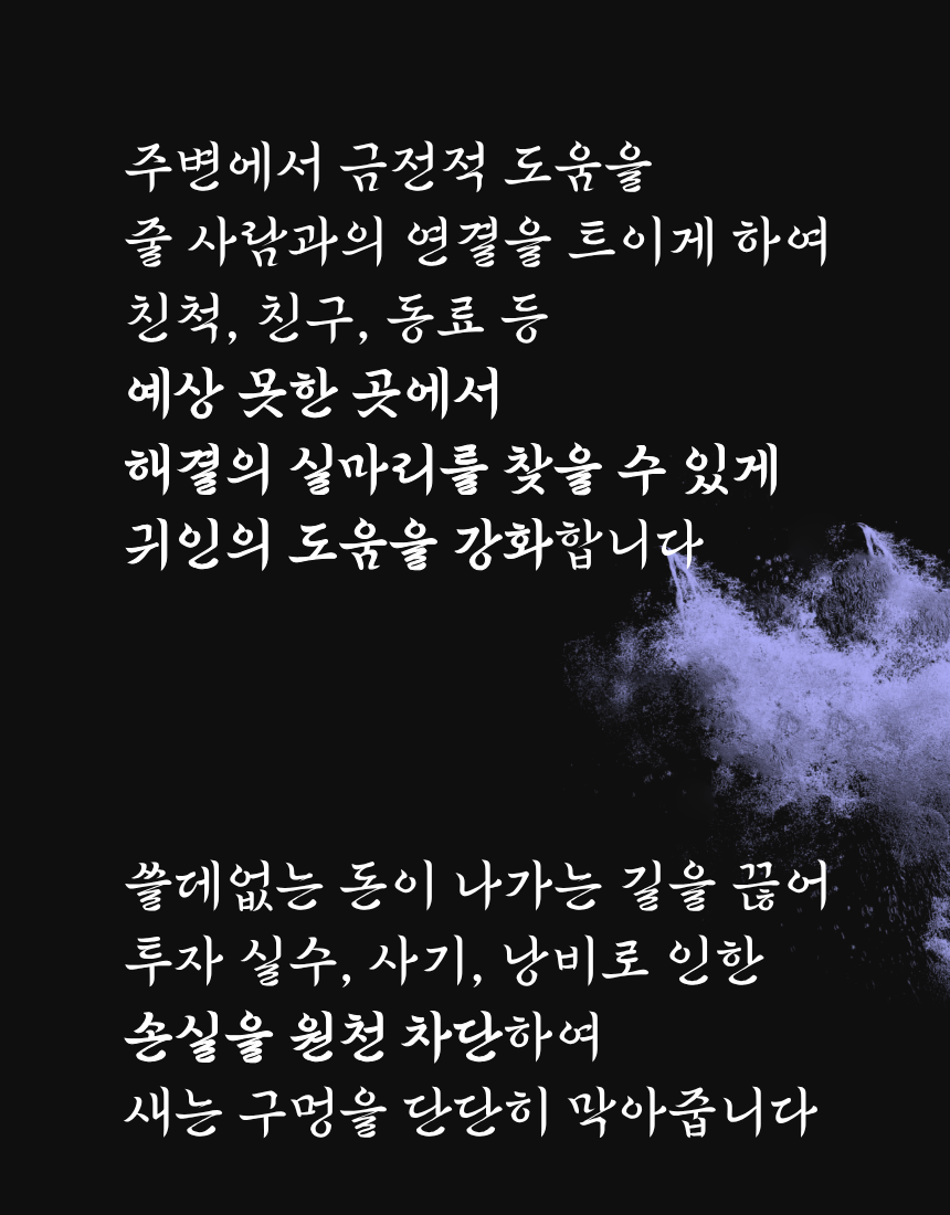 구매하기 장바구니 ♥ 성함 생년월일 + 추가 옵션 선택 [증폭기운] 금전 재물의 기운을 증폭시키는 복인장 복인장 [재물부] 추가(+10,000) 복인장 [소원성취부] 추가(+10,000) 복인장 [행운부] 추가(+10,000) 행운의 빛누리 신년사방기운(四方氣運)세트 옵션 선택 신년사방기운(四方氣運)세트(+20,000) TOTAL 0 구매하기 장바구니 ♥